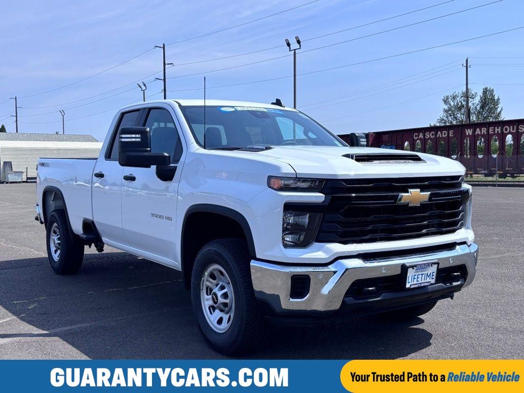 Meet the 2025 Chevrolet Silverado 3500 Work Truck built to dominate the jobsite and excel on the road. Powered by a stout V8 6.6L engine and equipped with rugged 4WD, this Chevrolet Silverado delivers relentless towing and hauling capability with confidence in any weather. Every detail is purpose-driven: a durable, work-ready bed, heavy-duty suspension, and contractor-friendly utility features are ready when you are. Inside, modern connectivity keeps your crew productive. Apple CarPlay and Hands Free Bluetooth let you take calls, route to the next stop, and stream playlists without taking your eyes off the task. Remote Start brings comfort before you climb in, and intelligent safety tech helps you stay focused: Lane Departure Warning provides alerts when attention drifts, while Rear Parking Sensors give you added assurance when backing heavy loads into tight spaces. This Chevrolet Silverado balances brute strength with smart convenience ideal for contractors, fleet operators, and anyone who demands serious capability without compromise. Itâs engineered to work harder, last longer, and make every day on the job smoother. If you need power, capability, and modern features in one no-nonsense package, this 2025 Chevrolet Silverado 3500 Work Truck is ready to get to work.
