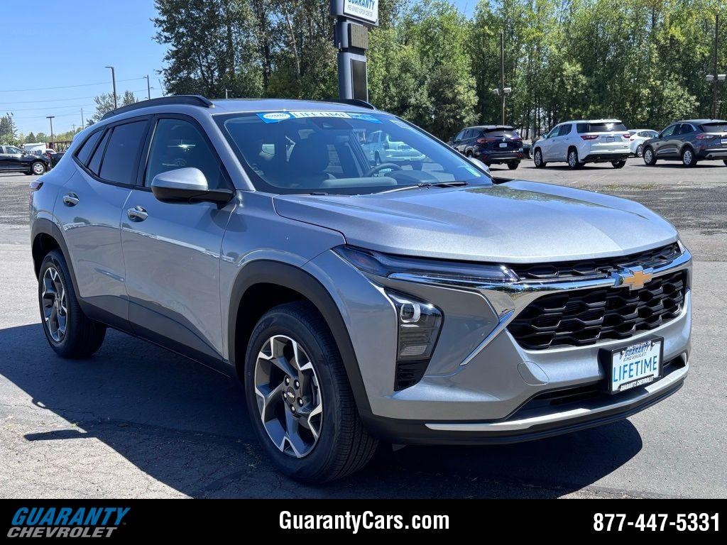 Discover the 2025 Chevrolet Trax LT a refined compact SUV designed for urban agility and confident highway cruising. Powered by a responsive 3-cylinder 1.2L engine paired with front-wheel drive, the Chevrolet Trax delivers efficient performance without sacrificing composure or comfort. Its modern exterior lines and smartly sculpted profile provide a presence thatâs both practical and polished. Step inside to premium leather seating that combines comfort with durability, creating an inviting cabin for daily commutes or weekend getaways. Automatic climate control maintains a consistent, comfortable environment for all occupants, while thoughtful interior ergonomics ensure easy access to controls and infotainment features. Safety and convenience are prioritized with advanced driver aids including Lane Departure Warning to help maintain lane position, a Back-Up Camera for clear rear visibility, and rear parking sensors that make tight-space maneuvering straightforward. These systems work together to enhance situational awareness and reduce stress in busy driving conditions. The Chevrolet Trax LT balances technology, comfort, and efficiency in a compact footprint, making it an excellent choice for drivers seeking versatile capability in city and suburban settings. Practical features and modern styling make this Chevrolet Trax a smart, well-rounded option for everyday driving.
