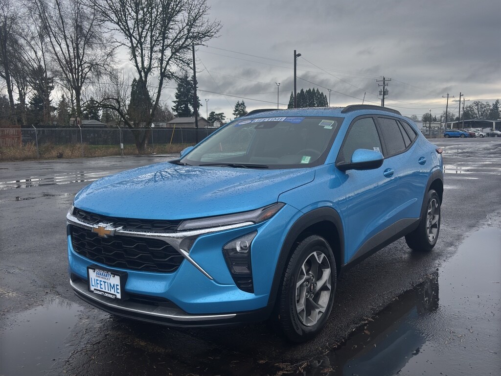 Ready to turn everyday driving into an efficient, stylish experience? The 2025 Chevrolet Trax LT in Junction City, OR, blends smart design, fuel-sipping performance, and advanced comfort features and it's priced to move. Under the hood is a modern 3-cylinder 1.2L gasoline engine with front-wheel drive, delivering impressive fuel economy without sacrificing responsiveness for city commutes or highway runs. Step inside and enjoy premium touches like leather seats and automatic climate control that keep you comfortable on every trip. Cold mornings are no problem thanks to the heated steering wheel cozy hands, instant comfort. Remote start adds convenience and lets you warm up or cool down the cabin before you hop in. Safety is a priority with Cross-Traffic Alert helping detect vehicles while backing, boosting confidence in parking lots and tight spaces. The Chevrolet Trax LT pairs a compact footprint with versatile interior space, making it ideal for young professionals, small families, and anyone who values practicality with style. Technology and comfort features are thoughtfully integrated to simplify daily life, while the efficient 1.2L engine helps lower fuel costs. Located in Junction City, OR, this Chevrolet Trax LT is offered at the best price a smart value for drivers who want modern features and dependable performance without overspending. Act quickly to secure this exceptional 2025 Chevrolet Trax LT in Junction City, OR top features, efficient power, and the best price available.