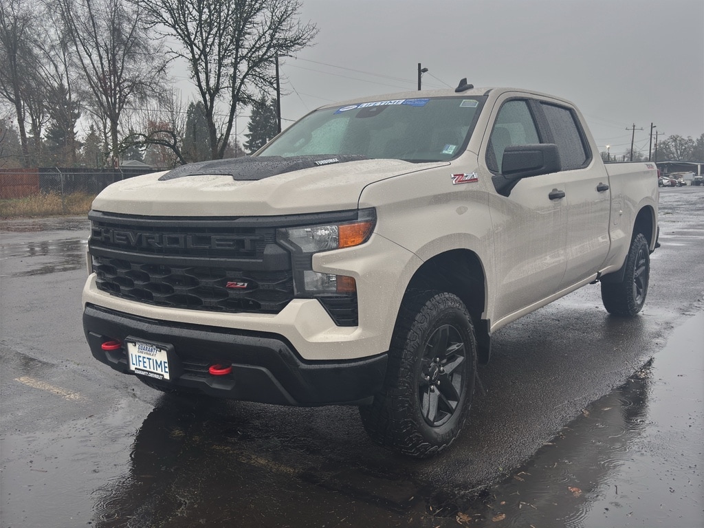 2026 Chevrolet Silverado 1500 Custom Trail Boss 4WD unbeatable value in Junction City, OR. This rugged yet refined pickup combines efficiency and capability with a responsive 4-cylinder, 2.7L gasoline engine and four-wheel drive to tackle highways, back roads, and worksite challenges with confidence. Carefully maintained and priced to move, this Trail Boss offers the best price in the area for buyers wanting modern tech and off-road confidence without overspending. Comfort and connectivity are prioritized with Apple CarPlay and Hands Free Bluetooth, keeping navigation, music, and calls seamless on every trip. Start cold mornings from the cabin or remotely via Remote Start for quick cabin comfort. XM Radio provides unlimited entertainment options for long drives, and Lane Departure Warning adds an extra layer of safety and peace of mind on busy corridors. The Custom Trail Boss suspension and styling deliver bold presence and improved capability, while the 2.7L engine balances fuel efficiency with strong towing and hauling potential for weekend adventures or daily duties. Trail-ready features, advanced driver assists, and a smart interior layout make this Chevrolet Silverado a practical choice for families, contractors, and outdoor enthusiasts alike. Located in Junction City, OR, this 2026 Chevrolet Silverado 1500 Custom Trail Boss 4WD is priced to sell and represents the best deal available schedule a test drive today and experience powerful performance, modern tech, and confident handling at an unbeatable price.