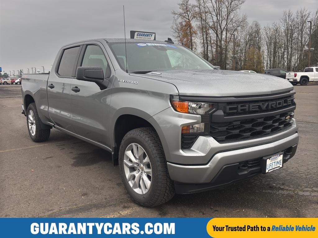 Discover the 2026 Chevrolet Silverado 1500 Custom 4WD a powerful, efficient pickup ready to tackle Junction City OR roads and beyond. Powered by a responsive 4-cylinder 2.7L gasoline engine, this Chevrolet Silverado delivers an excellent blend of fuel economy and confident performance whether you're commuting, towing light loads, or heading off-road. With four-wheel drive, it handles wet, snowy, and rough conditions with assurance. Inside, modern connectivity is front and center: Android Auto and Apple CarPlay keep your favorite apps, navigation, and music seamlessly integrated for safer, smarter driving. The back-up camera provides clear rear visibility for parking and hitching trailers, while lane departure warning adds an extra layer of safety on longer drives. Remote start brings convenience to your daily routine warm up or cool down the cabin before you step in. This Chevrolet Silverado Custom is rugged yet refined, offering a durable bed, comfortable seating, and intuitive controls designed for work and weekend adventures. Whether you're hauling gear or running errands, this truck strikes the right balance of capability, comfort, and technology. Located in Junction City OR, this 2026 Chevrolet Silverado 1500 Custom 4WD with the 2.7L engine is priced to move the best price available in the area. Don't miss your chance to own a versatile, tech-ready pickup that's built to perform. Contact us today to schedule a test drive and secure this exceptional value.