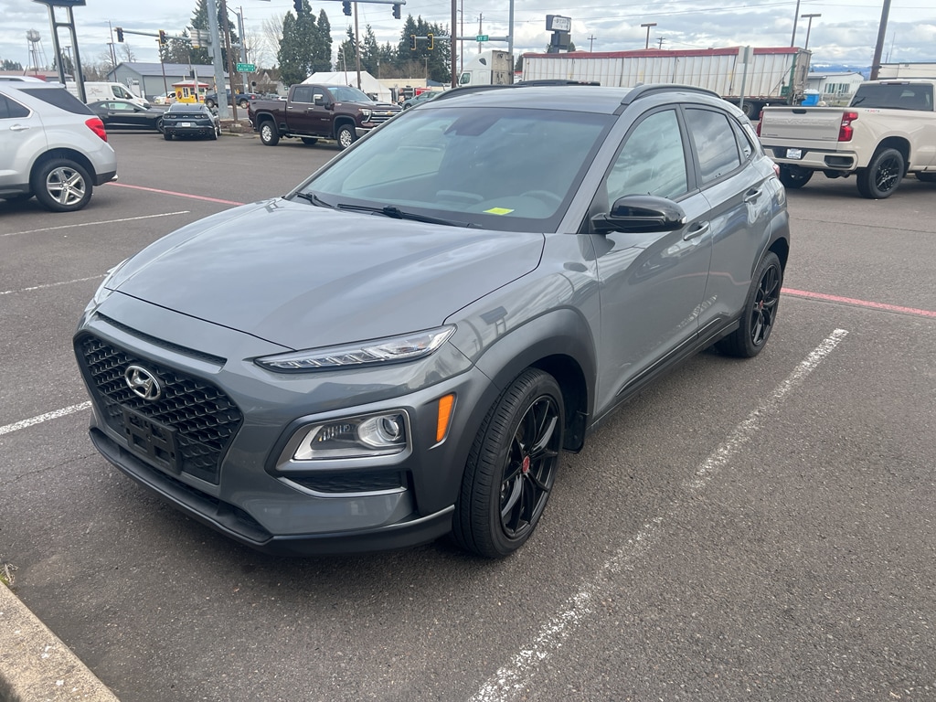 2021 Hyundai Kona NIGHT 4WD Located in Junction City, OR. This sporty compact SUV pairs a responsive 4-cylinder 1.6L gasoline engine with confident four-wheel drive, delivering agile handling and sure-footed traction for Oregon roads. Clean, well-maintained and competitively priced, this Hyundai Kona NIGHT offers exceptional value the best price in the area for its features and condition. Loaded with modern safety and convenience tech, the Hyundai Kona includes Lane Keep Assist to help maintain your lane on highway commutes, a Back-Up Camera for easier parking, and Remote Start for comfort on chilly mornings. Stay connected on the go using Apple CarPlay and Android Auto for hands-free navigation, music and messaging through your phone. The NIGHT trim adds premium styling cues, distinctive exterior accents and upgraded interior touches that elevate the driving experience. This Hyundai Kona is ideal for city drivers and weekend adventurers who want efficient fuel economy, nimble performance and versatile cargo space without sacrificing tech or safety. Available now in Junction City, OR with financing options and vehicle history available upon request. Don't miss the best-priced 2021 Hyundai Kona NIGHT 4WD with the features buyers want schedule a test drive today and see why this Hyundai Kona stands out in its class.