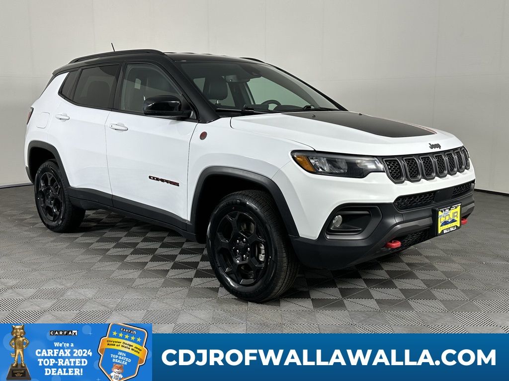 2023 Jeep Compass Trailhawk â" rugged capability meets refined comfort. This Trailhawk comes equipped with a fuel-efficient 2.0L 4-cylinder engine and full-time 4WD, ready for weekend adventures and confident daily driving. Trail-rated suspension, skid plates, and proven off-road geometry give you sure-footed traction on dirt, gravel, and snow, while modern conveniences make every trip enjoyable. Inside, premium leather seats provide supportive comfort for driver and passengers, and the thoughtfully designed cabin keeps essentials within easy reach. Stay connected and entertained with Apple CarPlay and Android Auto integration, plus Hands Free Bluetooth for calls and audio streaming. A Back-Up Camera enhances visibility for safer parking and maneuvering. Additional highlights: - Trailhawk performance tuning for off-road durability - Efficient 2.0L 4-cylinder engine with strong low-end torque - Confident 4WD system for variable conditions - Premium leather upholstery and durable interior trim - Seamless smartphone integration and voice control - Rear camera for improved safety This Jeep Compass Trailhawk presents a unique balance of capability, comfort, and technology â" ready for exploration without sacrificing daily practicality. Schedule a test drive today and experience the confidence of Trailhawk performance firsthand.