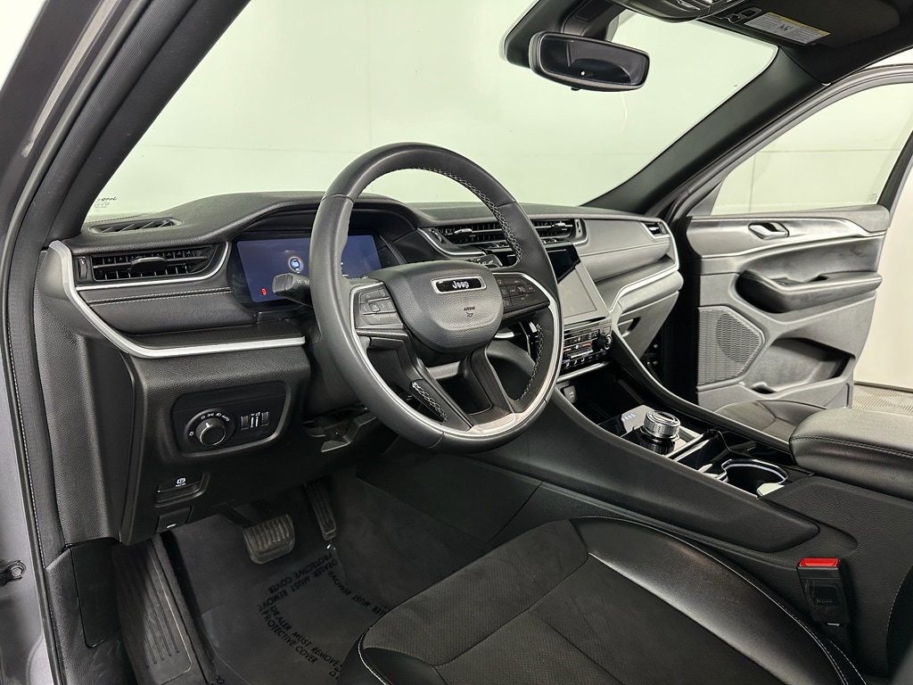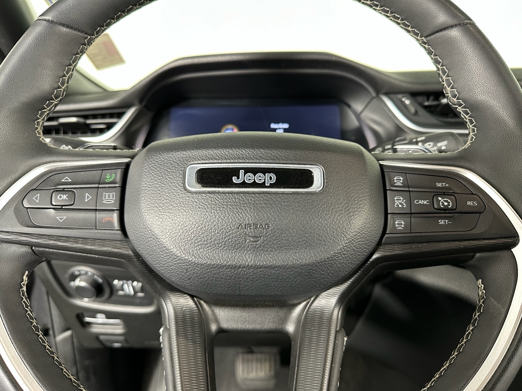 The Jeep Grand Cherokee L's Forward Collision Warning system alerts the driver to potential front-end collisions, enhancing safety. This unit has auto-adjust speed for safe following. Start this 2023 Jeep Grand Cherokee L from inside with remote start. This Jeep Grand Cherokee L offers Apple CarPlay for seamless connectivity. Good News! This certified CARFAX 1-owner vehicle has only had one owner before you. This Jeep Grand Cherokee L has a clean CARFAX vehicle history report. This mid-size suv offers Android Auto for seamless smartphone integration. This unit features a hands-free Bluetooth phone system. Keep your hands warm all winter with a heated steering wheel in the vehicle . See what's behind you with the back up camera on this vehicle. The leather seats in the Jeep Grand Cherokee L are a must for buyers looking for comfort, durability, and style. This Jeep Grand Cherokee L projects refinement with a racy metallic gray exterior.