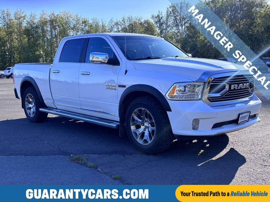 2017 Ram 1500 Limited 4WD 3.0L V6 Diesel, Junction City OR This 2017 Ram 1500 Limited with a fuel-efficient 3.0L V6 diesel and four-wheel drive combines premium comfort and rugged capability for drivers in Junction City, OR. Finished with upscale interior features and a refined exterior, this Ram Limited is ideal for towing, highway cruising and daily driving. The vehicle includes factory navigation to keep you on course, a heated steering wheel for cold mornings, and convenient push-button start for quick departures. Rear parking sensors assist with tight maneuvers and backing into trailers or crowded lots. Meticulously maintained with a CARFAX Clean Report, this Ram 1500 offers documented service history and peace of mind. The diesel V6 provides strong torque for hauling and better fuel economy than comparable gas engines, while 4WD enhances traction in adverse weather or off-road conditions. Premium leather seating, advanced infotainment, and thoughtful driver-assist features elevate the driving experience. Located in Junction City, OR, this Ram 1500 Limited is competitively priced and represents the best price available for comparable models in the area. Whether you need a dependable work truck or a comfortable family hauler, this Ram delivers capability, comfort, and value. Contact us for a test drive and detailed vehicle history.