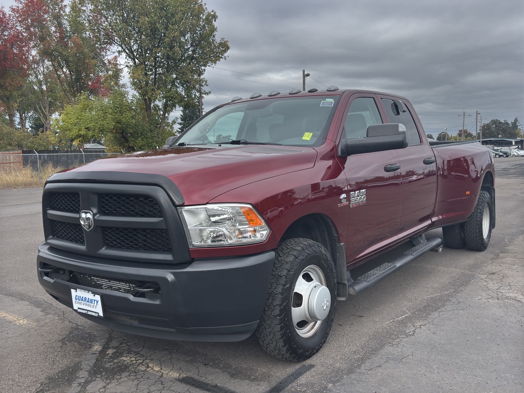 2018 Ram 3500 Tradesman 42,077 miles RWD Dual Rear Wheels 6.7L V6 Diesel Junction City, OR Power through your toughest jobs with this rugged 2018 Ram 3500 Tradesman, boasting a low 42,077 miles and a stout 6.7L diesel engine that delivers exceptional torque and long-haul reliability. Built for heavy-duty performance, the dual rear wheels and rear-wheel drive configuration provide outstanding stability and towing confidence, making this truck ideal for contractors, haulers, or anyone who demands capability and dependability. This Tradesman is equipped with features designed for convenience and safety: hands-free Bluetooth for seamless calls and audio streaming, XM/Satellite Radio for endless entertainment, and a back-up camera to assist with parking and trailer hookup. The vehicle comes with a CARFAX Clean Report for added peace of mind, confirming a transparent history you can trust. Located in Junction City, OR, this 2018 Ram 3500 Tradesman is competitively priced the best price in the area offering top value for a diesel workhorse with low miles. Whether you need maximum payload, towing muscle, or a reliable platform for upfitting, this Ram checks the boxes. Act now to secure a high-capacity truck that combines diesel durability, modern connectivity features, and an unbeatable price in Junction City. Contact us today to schedule a test drive and see why this Ram 3500 Tradesman is the smart choice for your next heavy-duty truck.