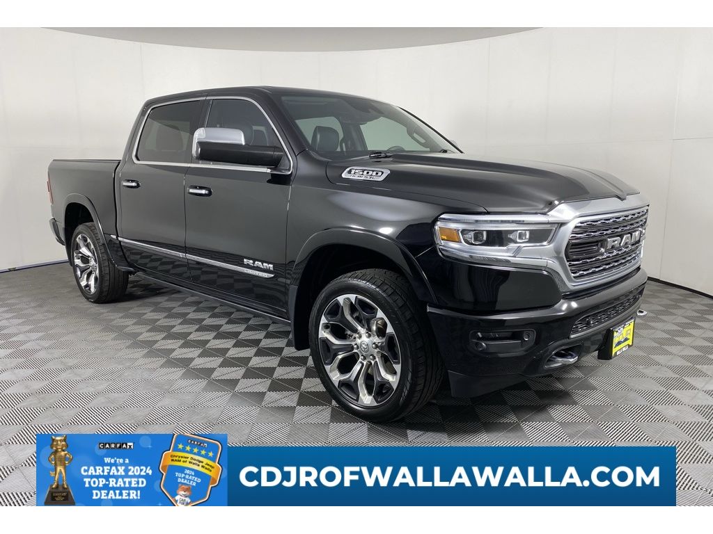 Quick Order Package 27M Limited. Limited Level 1 Equipment Group: Adaptive Cruise Control with Stop; Harmon/kardon 19-Speaker Audio; Advanced Brake Assist; Parallel/perpendicular Park Assist; Rear Ventilated Seats; Forward Collision Warn with Active Braking; Lane Departure Warning/Lane Keep Assist. Bed Utility Group: 4 Adjustable Cargo Tie-Down Hooks; LED Bed Lighting. Protection Group: Steering Gear Skid Plate; Transfer Case Skid Plate; Front Suspension Skid Plate; Fuel Tank Skid Plate. Trailer Tow Group: Trailer Brake Control; Bright Power Trailer Tow Mirrors; Trailer Tow Mirrors. Body-Colour Bumper Group: Body-Colour Front Bumper; Body-Colour Rear Bumper with Step Pads. Power Dual-Pane Panoramic Sunroof. 22 X 9 Polished Aluminum Wheels. Anti-Spin Differential Rear Axle. Class IV Receiver Hitch. 124-Litre (27.4-Gallon) Fuel Tank. Trailer Brake Control. Diamond Blk Crystal Prl. 3.92 Rear Axle Ratio. **Equipment listed is based on original vehicle build and subject to change. Please confirm the accuracy of the included equipment by calling the dealer prior to purchase.**